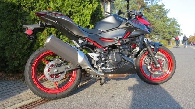 Die Kawasaki Z500 SE ist ein beeindruckendes Nakedbike, das durch seinen starken Zweizylinder-Motor und das sportliche Fahrwerk besticht. Obwohl die Sitzposition für größere Fahrer und die begrenzten elektronischen Assistenzsysteme kritisiert wurden, bietet die Z500 eine sportliche und spaßige Fahrerfahrung. Das leichtgängige Getriebe und die weiche Kupplung tragen wesentlich zum Fahrvergnügen bei. Insgesamt ist die Z500 ein hervorragendes Motorrad für diejenigen, die ein agiles Nakedbike suchen, das in seiner Klasse herausragt. Endlich ein Motorrad das wenig Gewicht bietet aber dabei nicht billig und kümmerlich wirkt. Richtig cool!